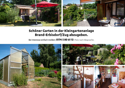 Der Garten ist ab sofort in der Kleingartenanlage "Hintere Kohlenstraße" e.V. in 09618 Brand-Erbisdorf neu zu